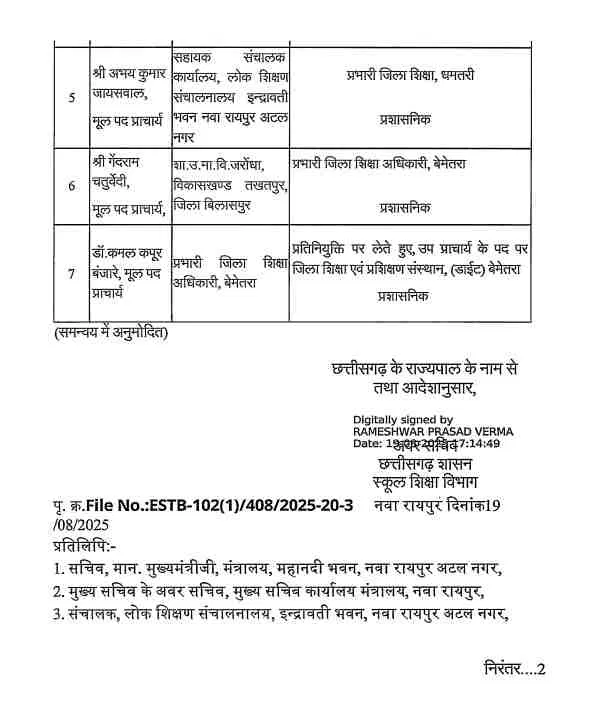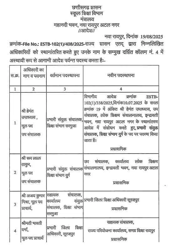 CG Transfer Breaking : शिक्षा विभाग में कई अधिकारियों के तबादले ,देखें पूरी लिस्ट